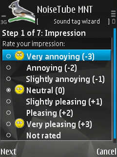 Etiquetado añade una capa de significado a las mediciones físicas a informar a la comunidad y a visualizar la naturaleza del ruido en los mapas luego. Como la selección de películas en YouTube o páginas web en Delicious, puede etiquetar las mediciones de ruido mediante la adición de las palabras libres separadas por una coma (por ejemplo, la fuente de ruido o el contexto, calificación, etc...).