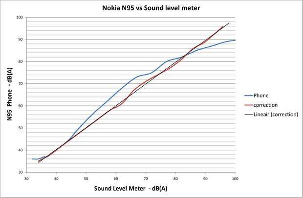 También se dibuja una curva de la historia para ver la evolución de la intensidad medida. Para entender mejor lo que realmente se mide refiérase a la sección de 'acerca de medición de volumen' a continuación.