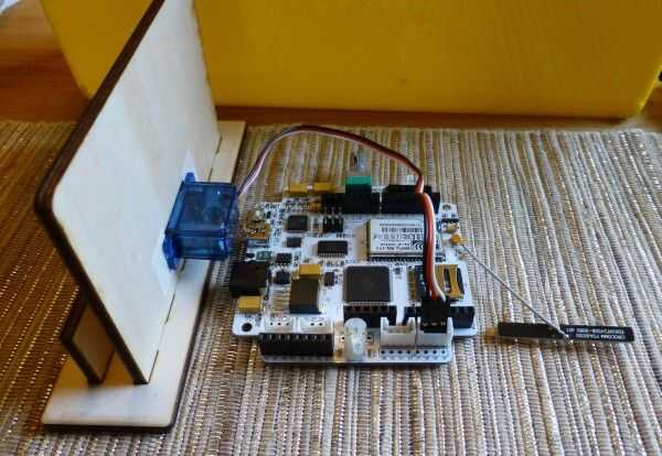 El servo está conectado ahora a la Junta de ReaDIYmate. Tiene un conectores de servo, sin necesidad de soldadura.