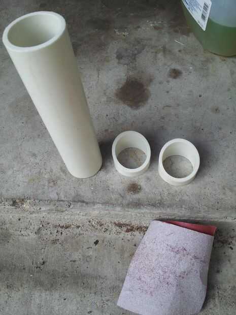 Usé 1 1/2" PVC porque la rosca del manómetro encaja muy bien en él. Cortar sobre una 4" pieza, mide el punto medio y corte diagonal para que ambas piezas sería del mismo tamaño. Entonces usé papel de lija para nivelar el lado diagonal y ángulo recto.