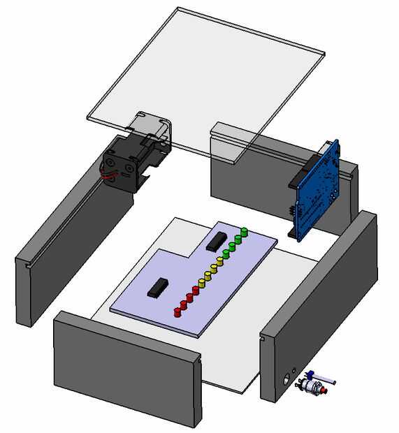 El recinto es un simple madera "marco" con una cara de vidrio y plástico y un cartón detrás. El tamaño de la caja se determinó por el cristal que he encontrado y la profundidad se estableció por la anchura de la chatarra de madera estaba haciendo él con. La ventana es sostenida en lugar por un surco cortado en el marco y el apoyo simplemente se atornilla en su lugar.