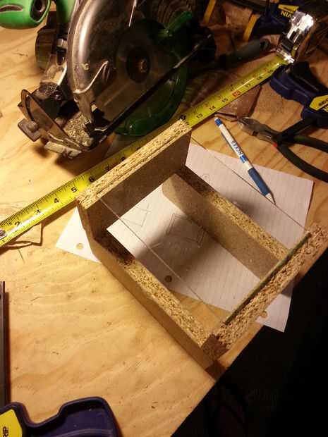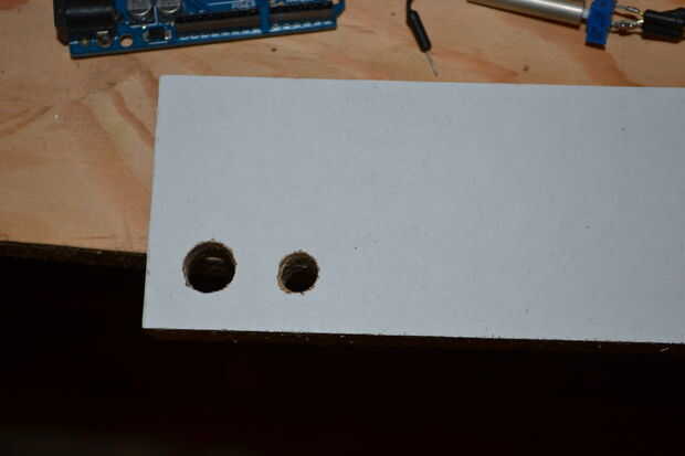 En este punto necesitará tener un interruptor, bote y botón de seleccionar modo puede preparar el recinto para ellos. Teniendo en cuenta donde se superpondrán las paredes cuando está montado, algo que casi me picó, perfore agujeros apropiados para sus componentes. Si sus paredes son más gruesas que las roscas de cualquier panel montado componentes deberá ensanchar la parte posterior del agujero para dejar espacio para el cuerpo o la tuerca, dependiendo de qué manera el componente monta en el panel.