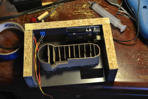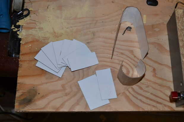 Para evitar que la luz LED adyacente se derrame en los segmentos mal vamos a necesitar algún tipo de separador entre los LEDs. Usé algunos rígida y delgada de cartón que doblado y cortado en forma caliente y alrededor de la placa de circuito pegado en su lugar, para el vidrio. Había pintado pero que probablemente no es necesario si tienen un color blanco/gris/beige/negro. Usted necesitará rodear la forma termómetro entero y tienen divisores para cada segmento.