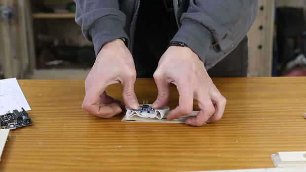 Taladrar los agujeros para los sensores y el USB cable y usar un cincel adaptarán el lugar para el conector. Puede utilizar un poco de tela para asegurarse de que encajan exactamente en el centro y marcar con el taladro.
