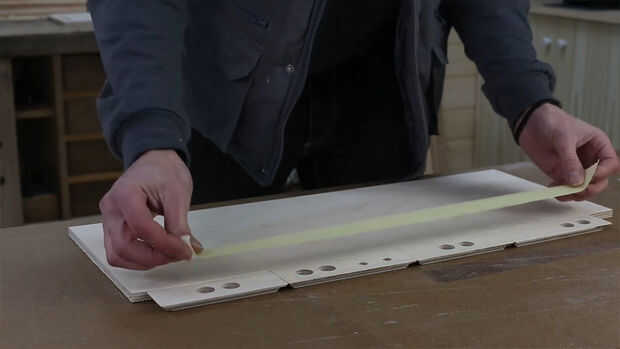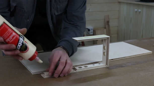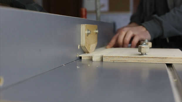 Puede empezar a cortar la madera contrachapada. Si usted tiene una idea diferente para el diseño de la caja, puede evitar esta parte e ir directamente a la electrónica. Incline el disco de 45 grados y cortar las cuatro piezas para el marco.