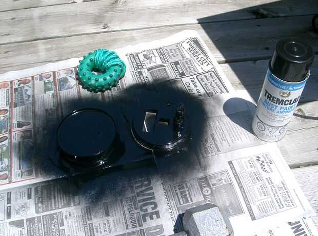 Luego la lata entera fue pintada con una bomba de spray negro y se trataron de conjuntos de prueba. El interruptor que pensé que tendría que pegar por el lado de la lata tuvo que ser movida de la superestructura porque – bien, sólo piénsalo por un segundo. Poner el interruptor horizontal entre las juntas hubiera sido imposible de montar. Corté un espacio en el tablero superior para al colgar hacia abajo mientras que se atornilla en la parte superior. Se puede ver en el tercer tiro.