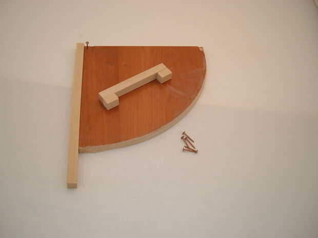 Después de cortar el arco, medir un pedazo de la varilla de madera para ser un poco más largo que el radio del arco de madera.