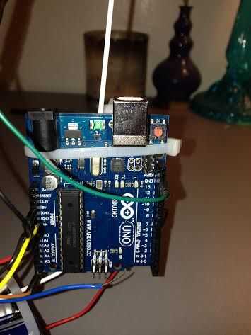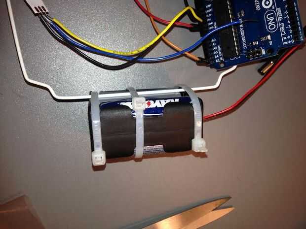 Conecté mi paquete de baterías 6 x AA a la parte inferior de la granja y coloca mi Arduino de eso. También os adjunto mi Arduino con una atadura.