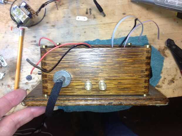 Para conseguir los separadores para las brechas de flujo de aire I tuercas de latón totalmente circulares de tierra y luego los había atornillada en la caja. El bronce le da un agradable aspecto clásico.