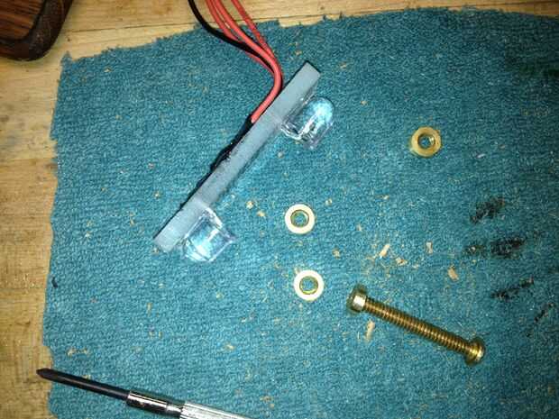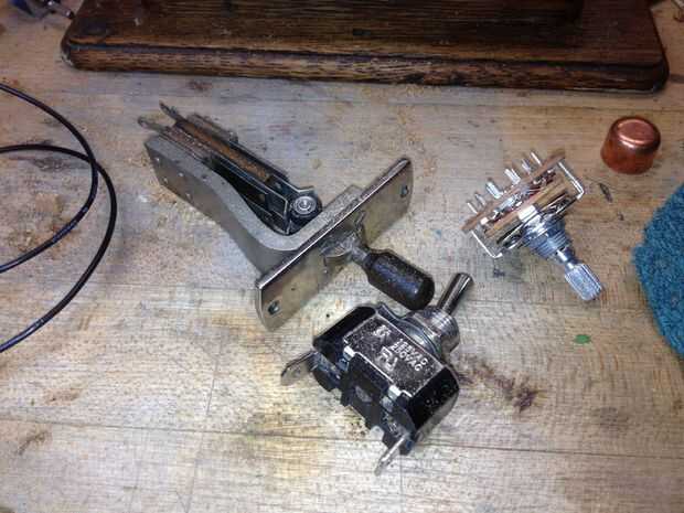 El interruptor de dos vías fue muy corroído y que no hace buen contacto para dar vuelta en y fuera de los tubos (por separado de los LEDs). Desmontar completamente y me limpió todos los puntos de contacto con tela de esmeril.