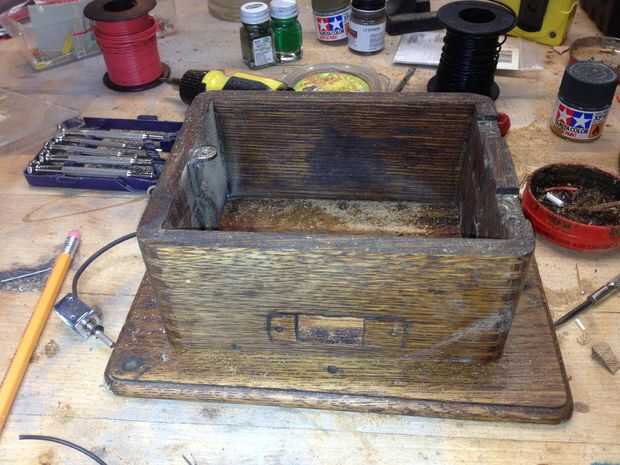Paso 2. Preparar la caja de interruptor del teléfono. He tirado la caja aparte y limpiar a la suciedad más importante fuera de ella con un poco de diluyente en un trapo. Luego siguió con un poco de aceite de lengua danesa en la madera para ayudar a reacondicionarlo.