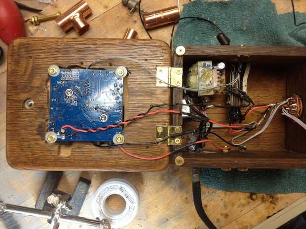 Luego montar todas las piezas en el interior, con tubo retráctil para proteger los alambres soldados de posibles cortos cuando la tapa esté cerrada.