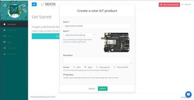 En primer lugar, vaya a https://sigfox.thethings.io crear una cuenta y luego crear nuevo proyecto de IoT.