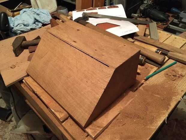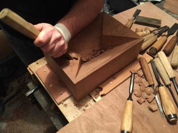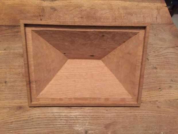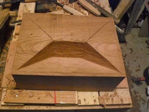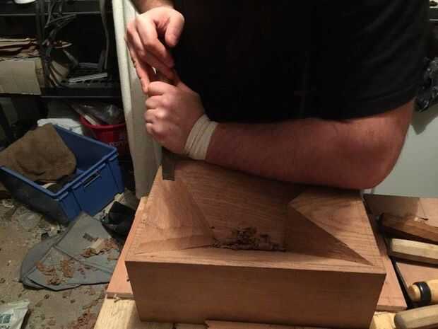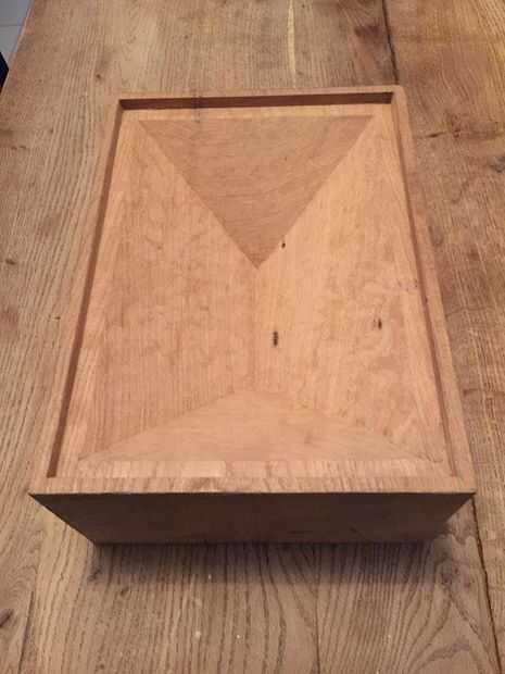 Así, el original fue realizado en castaño, pero en Francia hoy en día, es simplemente imposible encontrar un pedazo de castaña de ese tamaño, así que la idea era usar elm.