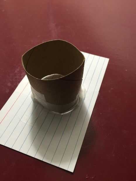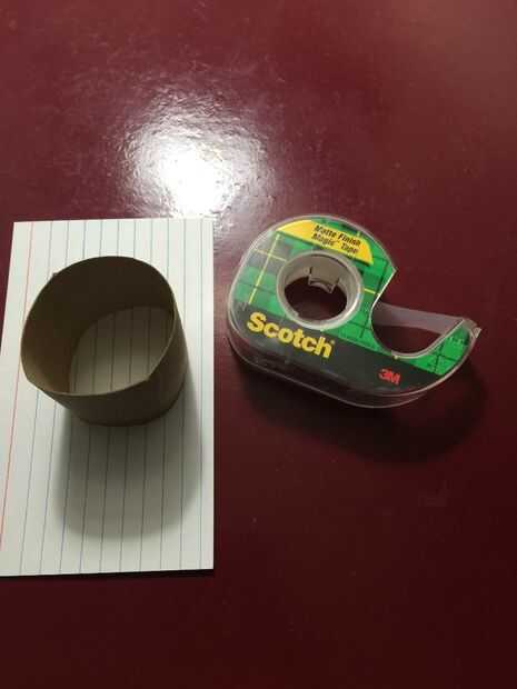 Utilice el tubo de papel de estraza y use la tijera para cortar dos pulgadas por la altura. Cubrir un lado del tubo con un papel mediante el uso de cinta para envolver alrededor de él.