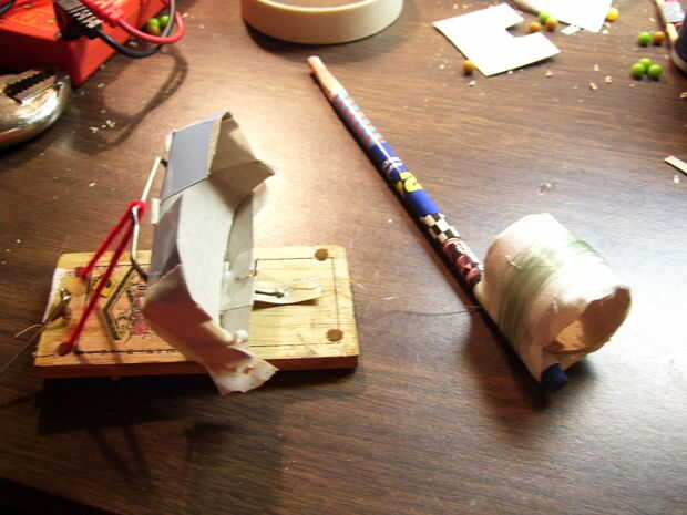 este es un genial tripwire activado no pirotécnicos (así produciendo ningunas emisiones peligrosas de fuegos artificiales) trampa usando la energía potencial de un resorte, también conocido como una trampa para ratones. está muy bien, y consigue un real incluso la propagación de unos 5-10 pies delante de la trampa, dependiendo del tipo de munición.