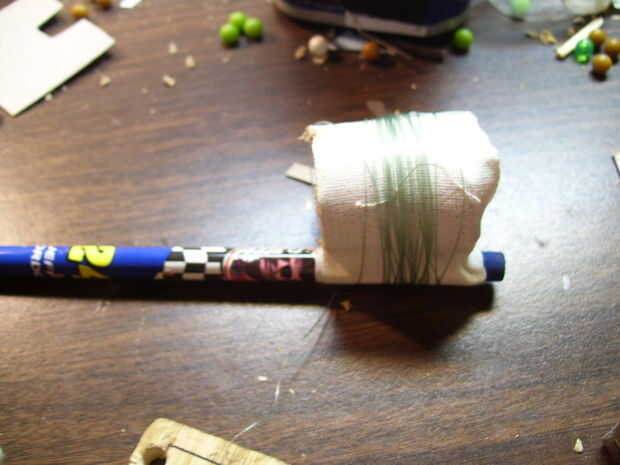 para este paso necesita el tubo y el lápiz y la cadena de la pesca. cinta adhesiva el tubo de lápiz y agregar una cadena y la cadena para el disparador de la trampa de la cinta.