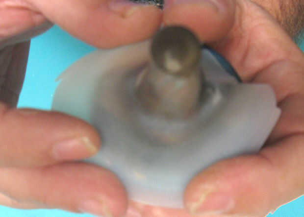 rápidamente empuja el material hacia abajo sobre la punta. El material ablandado extienden formando una tapa moldeada. Si el material de la boquilla del tubo polipropileno (mismo material que el jarro de leche), los materiales se adherirá a veces. Si los materiales no eres el mismo, sólo tienes una tapa ajustada.