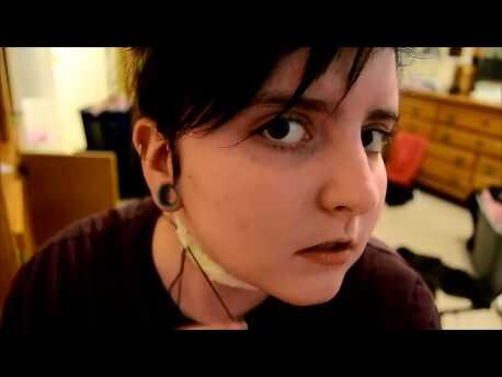 Enrosque la aguja, en primer lugar, utilizando un hilo bien grueso, negro. Comience en cualquier esquina de la herida, sólo asegúrese de que esté lo suficientemente espesa.