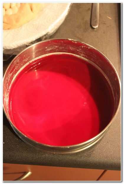 Mezclar un poco de harina de arroz y colorante rojo y agua para formar la sangre. Añadir el color de alimento abundante para conseguir una tonalidad roja oscuro. No hacen la mezcla muy diluida. Solo basta que se adhiere a la superficie de la cara y los lados del plato