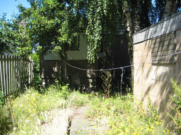 No tenemos muchas fotos 'antes' de nuestra guía y patio trasero ya que era bastante deprimente cuando primero llegamos a nuestra casa. El pasto y malezas fueron altura de la cintura y la mitad caída abajo cerca probablemente no había tenido ningún mantenimiento o limpieza en los últimos 30 años.