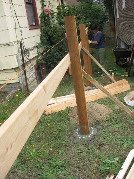Nuestra valla había sido construido con ocho pies entre los postes. Desde nuestra nueva cerca iba a utilizar un diseño horizontal nuestros nuevo postes iban a tener 5 pies aparte así que íbamos a tiene que conseguir algunos nuevos puestos. También nos acorta la altura de nuestra nueva cerca ya que teníamos menos postes de 4 x 4 que estábamos trabajando con salvado de nuestra valla.
