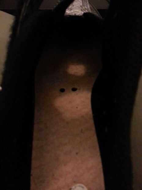 Entonces, usando la abrazadera como plantilla, marcó mis puntos de perforación a lo largo de esa línea. Quería llegar cerca del empeine, pero lo suficientemente lejos que el zapato no pierde ninguna fuerza.