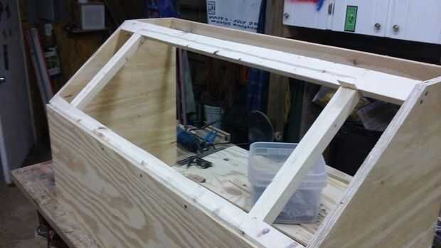 A continuación, pegados y atornillados la espalda y parte delantera y superior paneles en los paneles de los extremos. También he añadido 3/4 "x 3/4" grapas en el interior de los paneles de extremo para apoyar el piso también. Me corte el panel de piso de 20 "x 43 1/4" y había sujetado en su lugar.