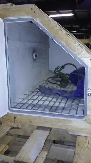 Para hacer una puerta para el gabinete puse líneas paralelas al perímetro de los paneles de los extremos, aproximadamente 1-1/2" dentro de los bordes para mantener la integridad estructural. Luego estaba el gabinete final, subido en un taburete y cortar la puerta con una sierra circular y una sierra de calar. Luego instalé el tope de la puerta alrededor del perímetro de la puerta para que la puerta tenga algo para descansar contra mientras la cerrada. Luego colocar la puerta en posición, con una cuña pequeña bajo el borde inferior para mantener el espacio adecuado e instala las bisagras y el pestillo. Después se pintó el interior del gabinete, he instalado 1/2" ancho, del que se pega la tira de tiempo a las paradas de puerta para proporcionar un sello hermético