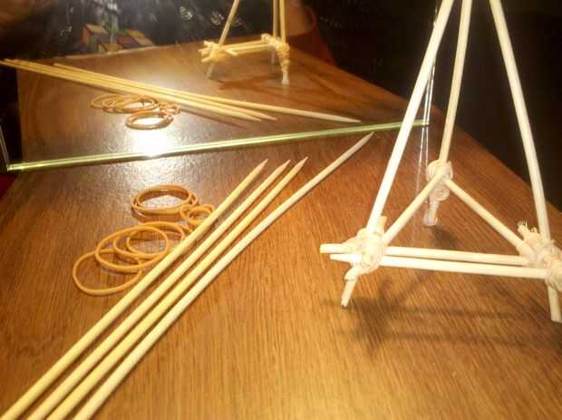 usa pinchos para hacer un soporte (retrato y paisaje) para tu ipod touch, iphone, droid, psp y otros dispositivos. Incluso puede utilizarlo como una base del Mini. Montón de ideas para esta cosita. Todo lo que necesitas es unos 4 pinchos y unos 10-15-bandas de goma. (pequeños) También tienes que ser capaz de romper un pincho en la mitad (que cualquier cuerpo puede) o de alguna manera de cortarlos (Sierra pequeña o las tijeras)