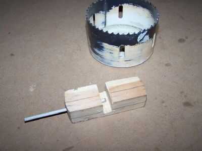 Hacer una muesca en el centro del bloque que se extiende por debajo de donde pasa el agujero a través del bloque.  Yo he insertado mi pedazo de varilla de acero para fines de ilustración.
