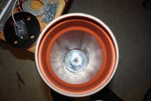 Sistema de riego utiliza caída libre de agua de alimentación. Debido a, el tanque de agua necesita ser levantado del piso. Hicimos tanque de agua de desagüe de 1m de longitud y 16 cm de diámetro. Nos divide el tubo en dos secciones. Sección de amante (primeros 50 cm) albergará las válvulas. Sección superior servirá como depósito de agua. En la parte superior estamos utilizando tapa de extremo de pipa como tapa del tanque de agua. En capacete que montado el sensor ultrasónico. Para mayor estabilidad hemos añadido la base de madera, que será también Casa electrónica y batería pack.