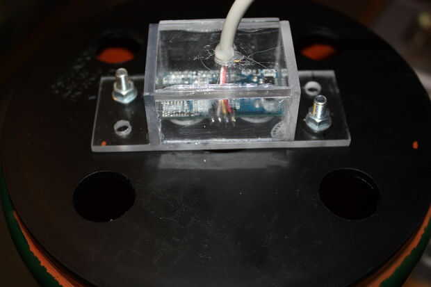 Soldar los cables al sensor ultrasónico (utilizamos cable FTP o UTP, puede ser uno de ellos). Luego instalamos sensores en pequeña medida cubierta de vidrio acrílico. Cubierta con un sensor fue sellada y montada en la tapa del tanque. Vivienda fue un poco improvisada y no es esencial. Por eso, hay ninguna imagen y no hay planes para él. Usted puede averiguarlo de alguna manera por usted mismo.