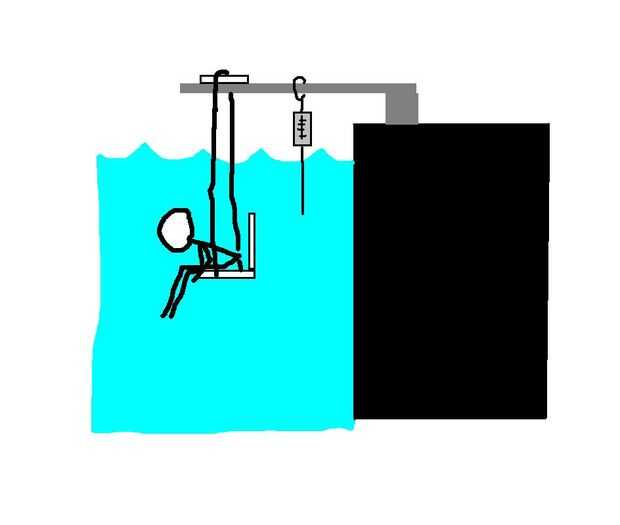 Exactitud puede mejorarse aún más no sólo mediante el uso de un cinturón de peso/peso, pero también una escala más sensible. A continuación es un crudo boceto de cómo podría usar un trampolín y algunas otras escalas más sensibles para obtener una mejor lectura del peso bajo el agua. Este método también haría permanecer inmóvil y repitiendo la medición UWW más fácil.