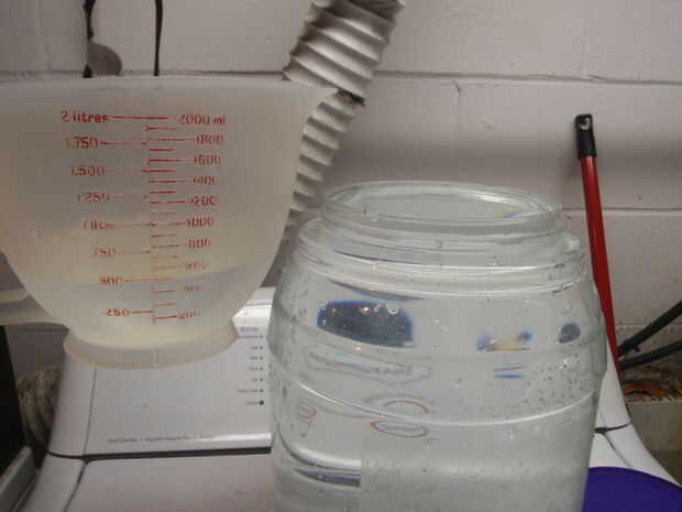 9. Llene una taza de medir con una cantidad conocida de agua y llene el recipiente hasta el borde con agua. El seguimiento de la cantidad de agua que añade a la jarra.