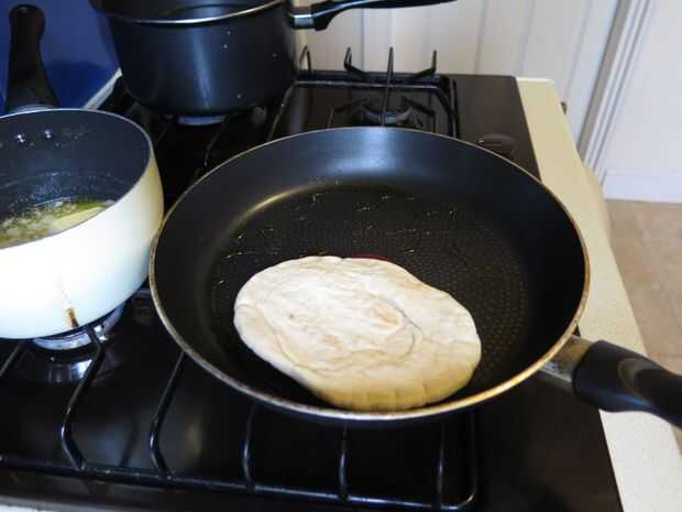 Cuadro 1. En un sartén caliente agregar una pequeña cantidad de aceite de oliva y freír el pitta en cada lado.