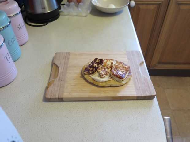 Cuadro 3. Coloque 3 rebanadas de halloumi frito en siguiente.
