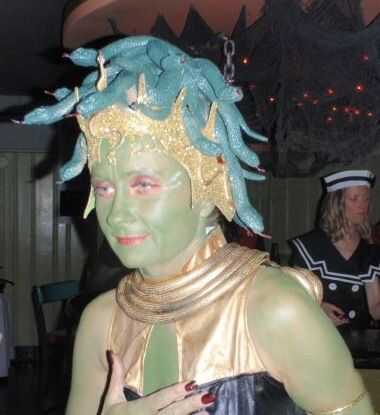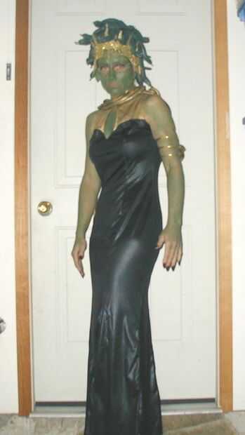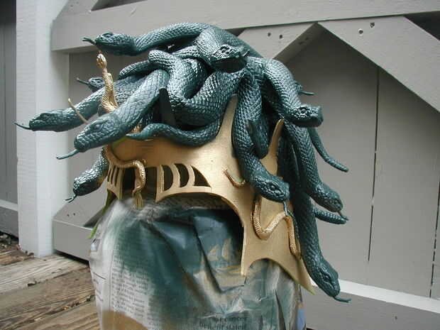 Es Medusa... con un toque.El traje consta de tres componentes: el vestido, el tocado y los accesorios.1. el vestido-* obtener o hacer una diosa rosa Vestido2. el casco-* obtener un montón de serpientes de goma juguete desde 4" hasta 8" de largo*