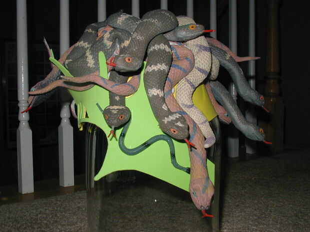 Estoy haciendo un disfraz de Medusa para mi fiesta de Halloween este año. Quería una peluca que era loco y divertido y así ordené algunas serpientes y fue a la ciudad. Es mucho tiempo pero merece la pena el tiempo. Les espero guste! Esto funcionó muy