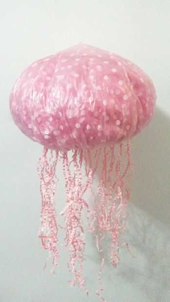Finalmente obtendrás una medusa hecha de plástico y papel