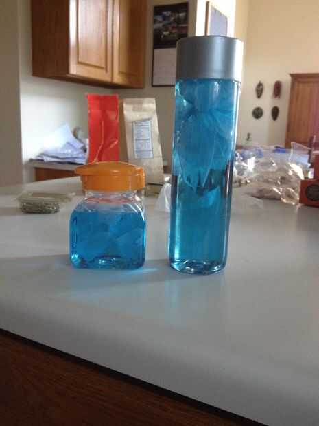 Ahora, simplemente, poner tus medusas en la botella o lo que sea. No hay instrucciones especiales necesitadas. Dependiendo de diversos factores, la medusa puede fregadero, flotador o ninguno, solo se esconden en el medio. Tanto mío flotaban, y parecía que "Venía para arriba para el aire!" Estaba muy contento con dos botellas y amaba el efecto dio al revés, sin embargo, si no te gusta tuyo flotante, hundimiento, por ejemplo, luego experimentar! Me encantaría escuchar tus historias e ideas!