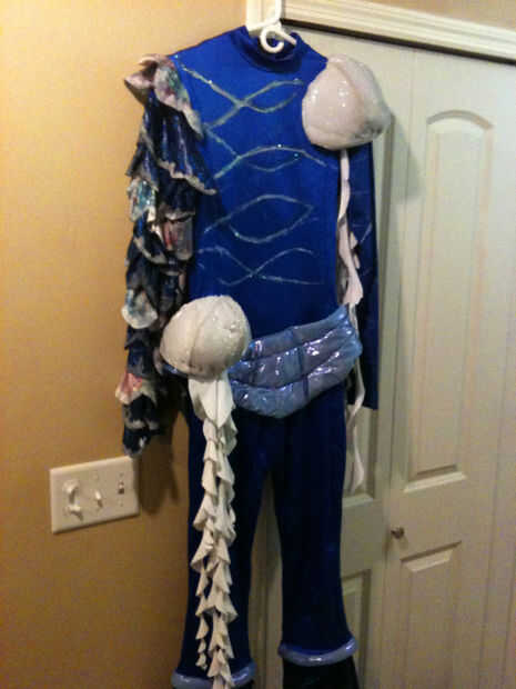 A continuación, cortar los tentáculos en la dirección circular, como en el dibujo y pegar los extremos amplia en el interior de la medusa para que cuelgan hacia fuera. ¡ Cubre la pieza del sombrero con tela extra y pegamento caliente, añade una correa elástica para sujetarlo en la cara y se hizo! :) Voy a ser aerografía algunos colores en lo siguiente, yo solo no he conseguido que todavía. Me alojé hasta tarde anoche para terminar otros proyectos traje y me cansé demasiado.