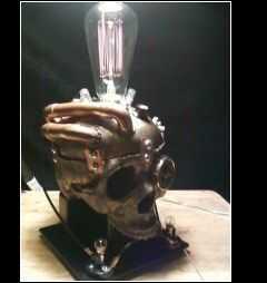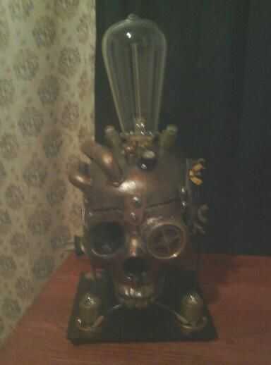 Se trata de una época victoriana, Steampunk inspirada lámpara de cráneo. Handmand y es única en estilo y diseño. Totalmente funcional e interactiva. Se conecta a cualquier tomacorriente estándar de Estados Unidos.