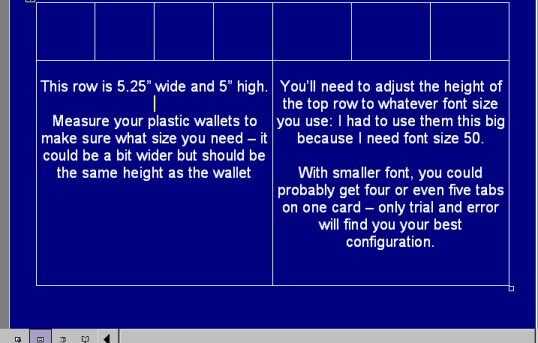 Usted probablemente será capaz de hacer la fila superior mucho más pequeño, y obtener más fichas por tarjeta. Es mejor imprimir tus pruebas en papel ordinario, seguido de tarjeta solamente cuando estás seguro que no vas a desaprovecharla. Si tienes tarjeta A5 puede imprimir un índice a cada hoja, pero esto fue todo lo que tenía a mano.