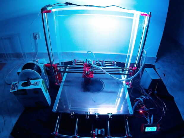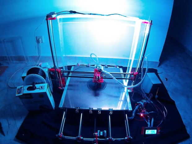 ¿Qué haces?Este dispositivo es una impresora 3d de Mendel Prusa. Es RepRap, lo que significa que es de código abierto. Empecé el trabajo en agosto en 2012 y yo apenas lo estoy terminando ahora, el único paso restante es hacer la calibración fina. El