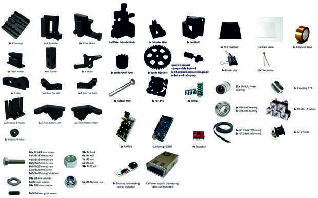 Aquí está la lista de material necesario para construir un Mega Prusa i3 retrabajo, tey son muy similares a la reanudación de i3 de Prusa.