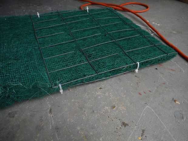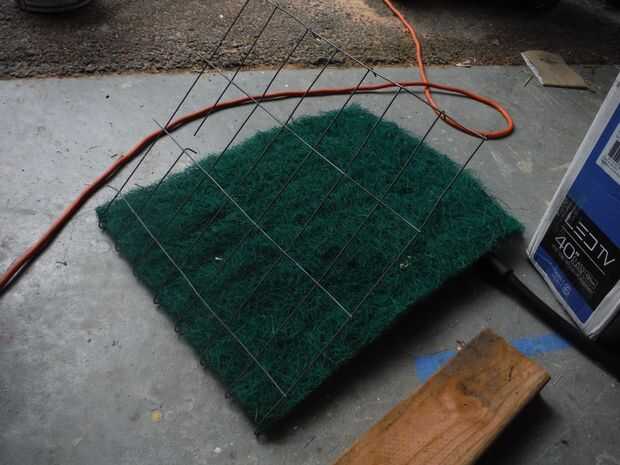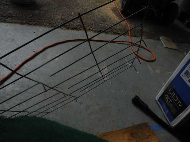Utilice la cerca de alambre soldado con autógena de acero galvanizado para hacer a soportes para las pastillas que usted recortar por cortar dos tramos de valla que miden 15" por 28" y una sección que mide 13 1/2" 28". Doblar por la mitad y cortar algunos de los alambres para que puedan doblarlas hacia dentro y pegar en las almohadillas del refrigerador. Luego tomar tus pastillas de refrigerador y ponerlos en los marcos como se ve en las imágenes 3 y 4. Asegúrelos con abrazaderas de plástico como se ve en la imagen 5.