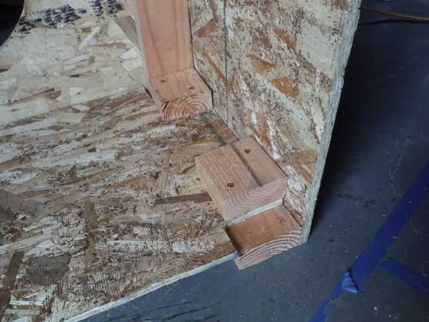 Este paso es realmente sencillo. Ponga su refrigerador en posición vertical y deje detrás de él. Ahora volcarla a la izquierda. Ahora tome el par restante de 3 1/2" 2x4s y utilice tornillos de 3" para pegarlas en el borde junto a la base como se ve en la imagen. Esto asegurará que tu estanque se coloca correctamente para evitar fugas.