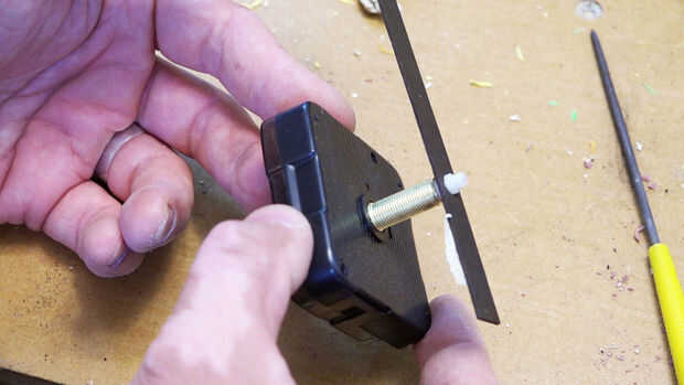 Hice mis propias manos de reloj de las tiras de ébano, pero las agujas del reloj deben ser proporcionales a la esfera del reloj.
