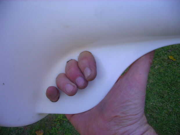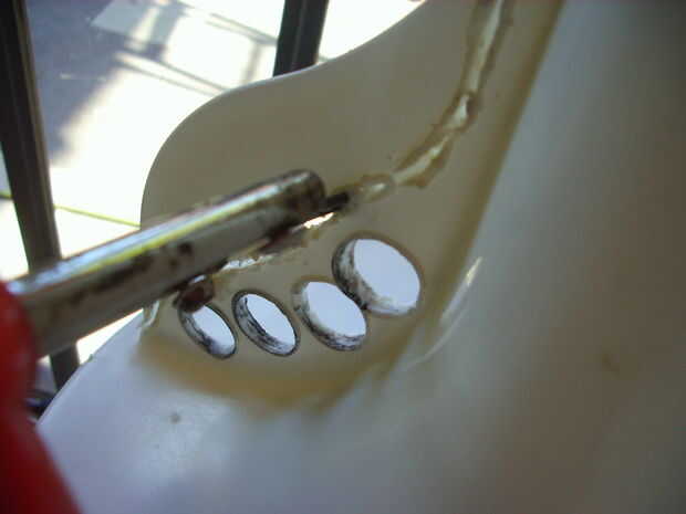 Nuestro megáfono tener una manija para agarrarlo cómodamente. A tal efecto, lo más fácil será hacer cuatro agujeros en una de las tres aletas, usando un trozo de caño metálico calentado sobre la llama de gas. Obviamente, cada agujero es para pasar un dedo. Luego, usando un alambre caliente o el representatividad para estaño, se capitana la parte de la aleta que no hace falta.